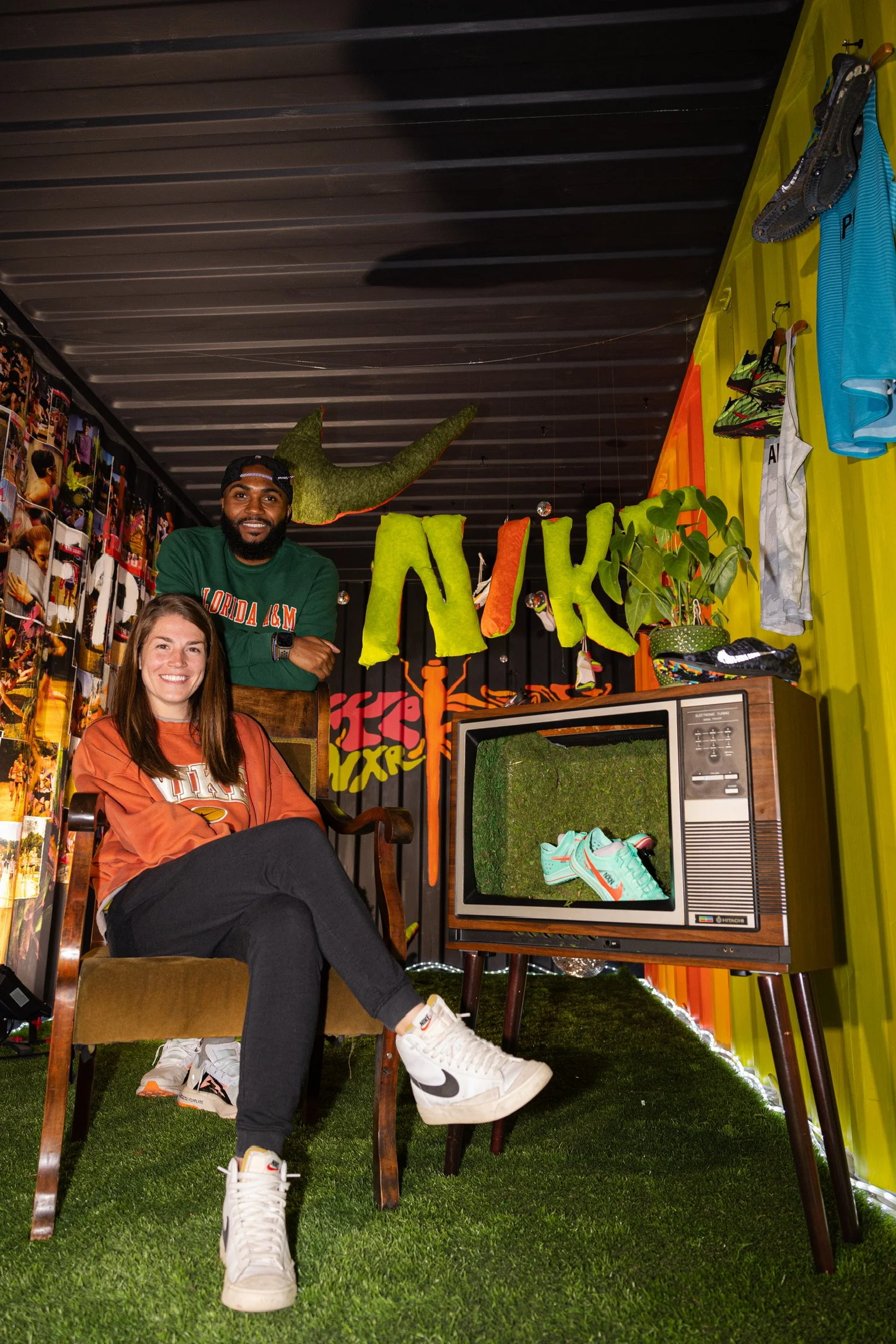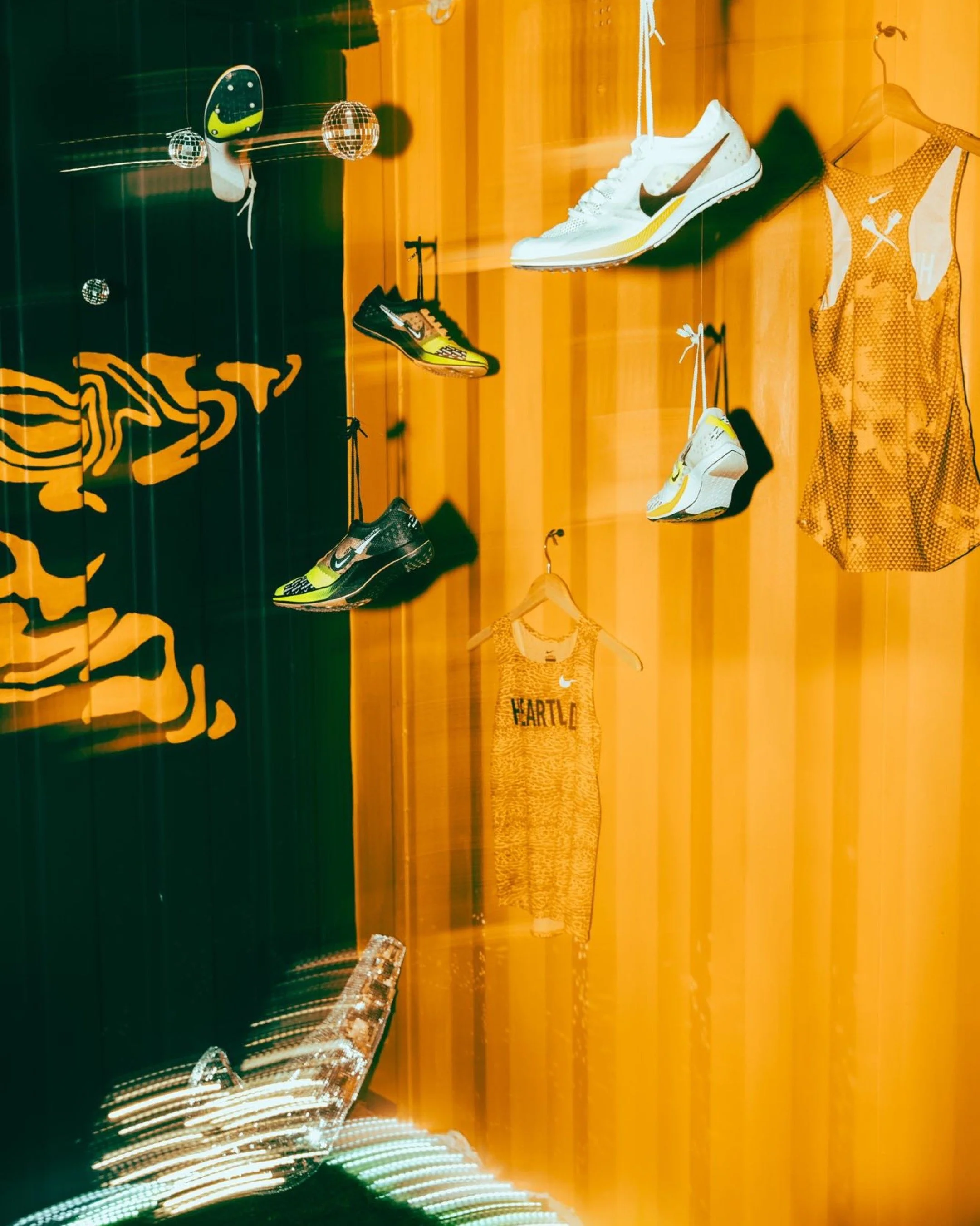 This install was complete with fabric swoosh art, a “Wall of Pain” highlighting Nike’s Finish On Empty slogan + local athletes from last year’s NXR, and American Olympian + Record Holder Grant Fisher.
